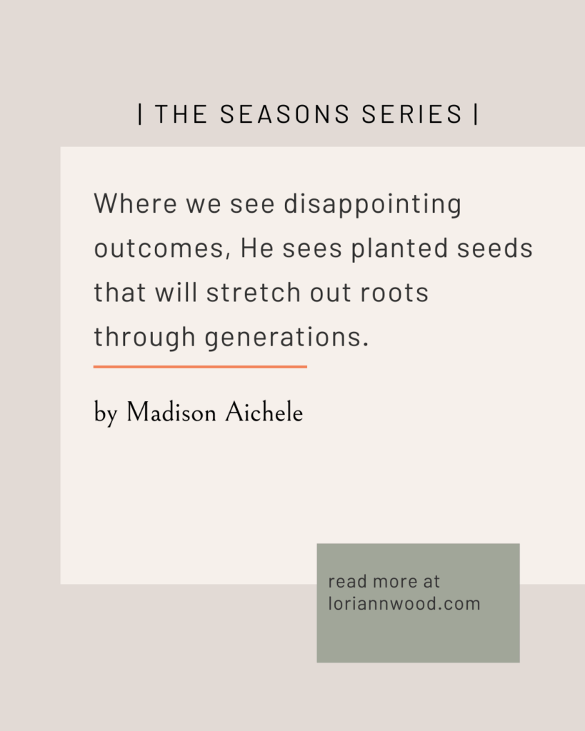 True things will last because that’s the kindness and grace of God. Where we see disappointing outcomes, He sees planted seeds that will stretch out roots through generations.